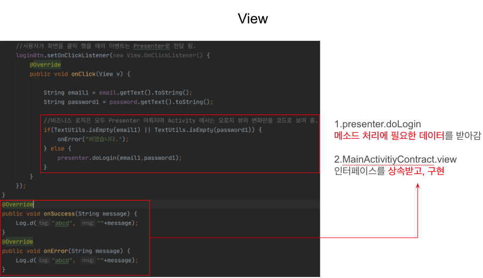 -Model,View,Presenter의 약자